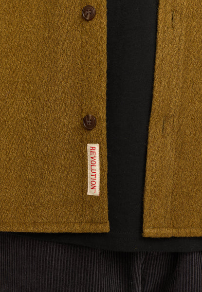 Uma sobrecamisa inspirada na roupa de trabalho, confecionada num tecido misto de poliéster e lã resistente, com uma superfície macia e quente. O padrão subtil e estruturado confere personalidade à sobrecamisa, que é construída com bolsos utilitários quadrados característicos no peito, uma carcela frontal com acabamento em botões estilo chifre e punhos ajustáveis nas mangas. A alça na gola facilita o uso da camisa e, para maior conforto, é confecionada com um encaixe traseiro tradicional de camada dupla com pregas, que proporciona uma maior liberdade de movimentos. É perfeita para usar por cima de uma t-shirt ou sweatshirt durante a estação fria, ou como uma camada de roupa de transição.