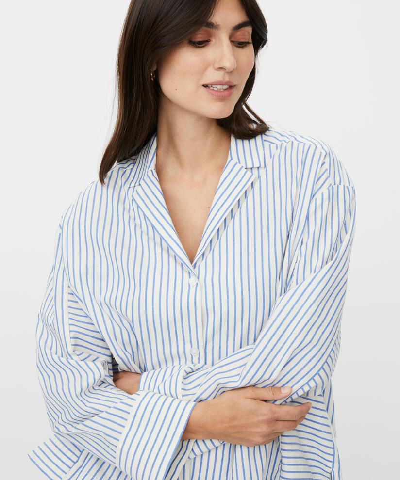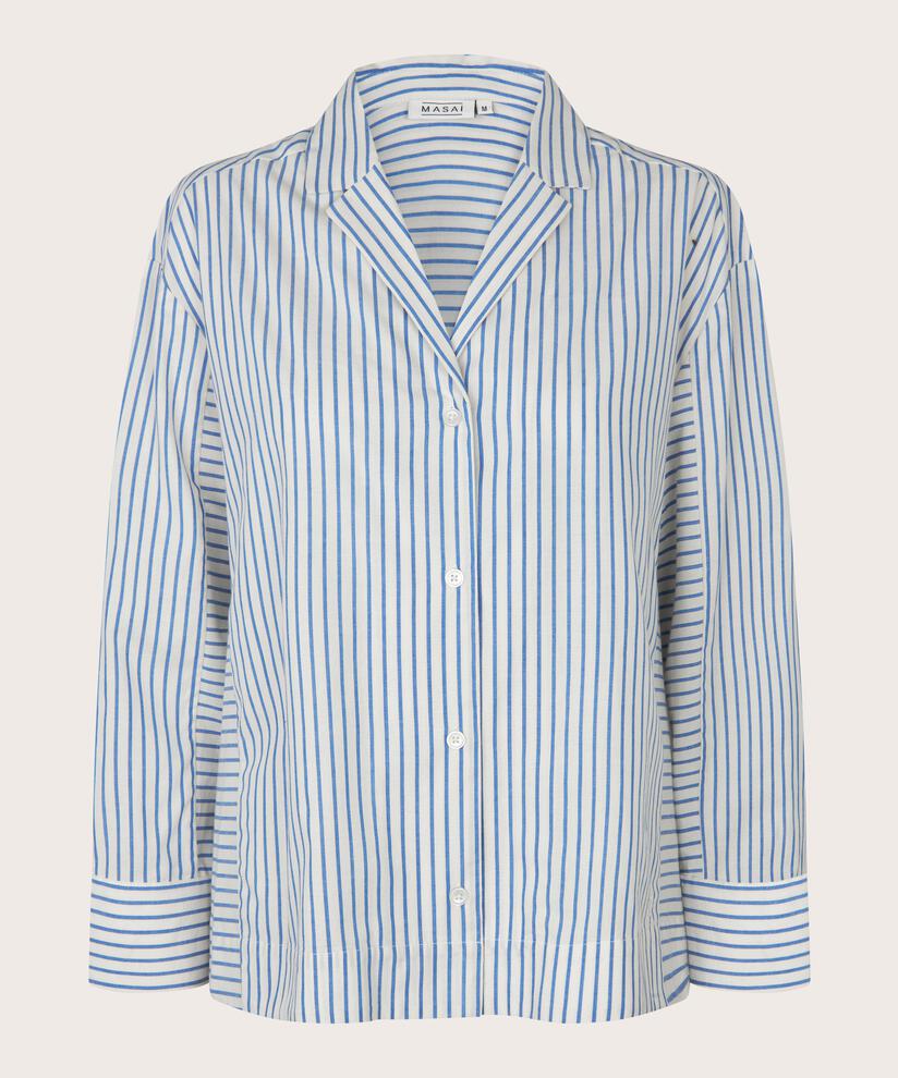 Esta camisa de algodão joga com a direção das riscas, criando um look interessante. É confecionada no algodão mais macio, com um corte ligeiramente arredondado que se ajusta suave e confortavelmente ao corpo. Repare também no novo ícone Masai bordado.